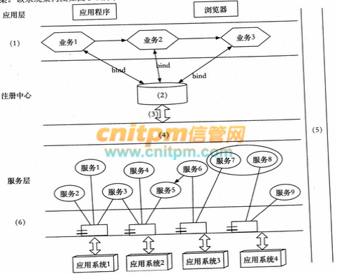 基于该信息系统整合的实际需求,项目组完成了基于 SOA 的银行信息系统架构设计方案。该系统架构图如图 5-1 所示:
