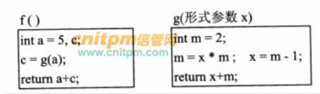 函数f和g的定义如下图所示。执行函数f时若采用引用(call by reference)方式调用函数g(a),则函数f的返回值为( )。A.14B.18C.24D.28