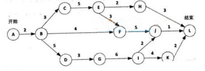 某软件项目的活动图如下图所示,其中顶点表示项目里程碑,连接顶点的边表示包含的活动,边上的数字表示活动的持续时间(天),则完成该项目的最少时间为(15)天。活动BD最多可以晚开始(16)天而不会影响整个项目的进度。