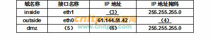 如果需要在DMZ域的服务器(IP地址为10.10.0.100)对Internet用户提供web服务(对外公开IP地址为61.144.51.43),请补充完成下列配置命令。