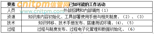 小王负责部署实施的整体计划,通过整理相关材料,把部署实施工作分为三个阶段 和四个要素,针对不同要素罗列了已知可能的工作内容,如下表:
