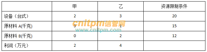 某电池厂生产甲、乙两种型号产品(单位:万个),这两种产品都需要设备和A、B两种原材料,利润与资源限制条件如表所示,为了获得最大的利润,该电池厂每天生产的甲产品的数量应为( 1 )万个,此时该企业每天的利润为( 2 )万元。(1) A A、1B、2C、3D、4(2)DA、20B、22C、24D、26