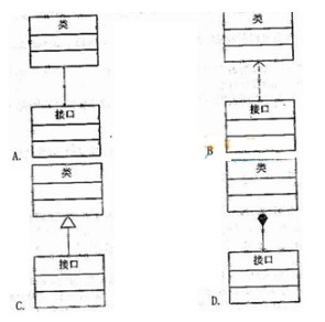 在面向对象的基本概念中,接口可以被理解为是类的一个特例。如果用可视化面向对象建模语言(UML )来表示,则()图表示了类和接口之间的这种关系。 A. AB. BC. CD. D
