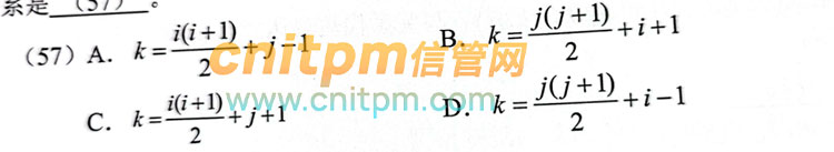 对于一个n阶的对称矩阵A,将其下三角区域(含主对角线)的元素按行存储在一维数组中,设元素A[i][y]存放在S[k]中,且S[1]=A[0][0],则R与i,y(i<=y)的对应关系是( )
