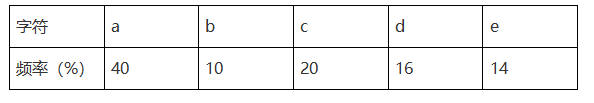 已知某文档包含5个字符。每个字符出现的频率如下表所示。采用霍夫曼编码对该文档压缩存储,则单词“cade”的编码为( ),文档的压缩比为( )(1)A、1110110101B、1100111101C、1110110100D、1100111100(2)A、20%B、25%C、27%D、30%