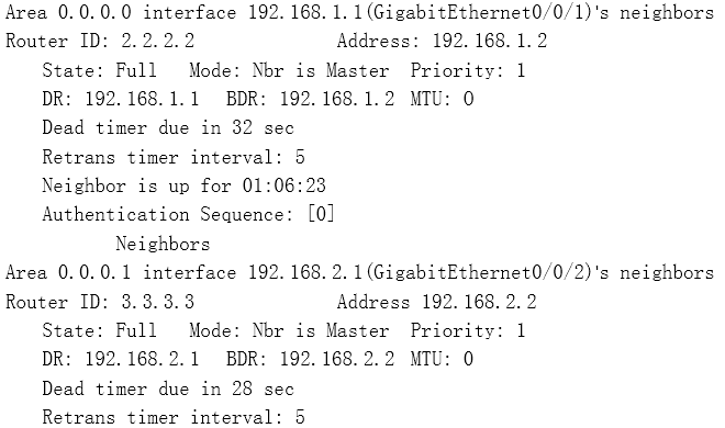 下图1所示内容是在图2中的(1)设备上执行(2)命令查看到的信息片段。该信息片段中参数(3)的值反映邻居状态是否正常。