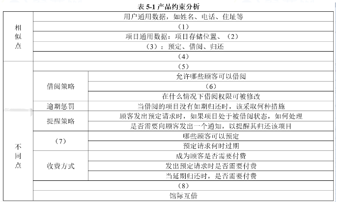 表5-1产品约束分析