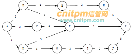 下图为某项目规划的进度网络图(单位:周)。在实际实施过程中,过程B-E比计划延迟了2周,活动J-K比计划提前了3周,则该项目的总工期是( )周。 A、12B、14C、15D、13
