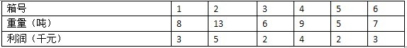 载重量限 24吨的某架货运飞机执行将一批金属原料运往某地的任务。待运输的各箱原料的重量、运输利润如下表所示。