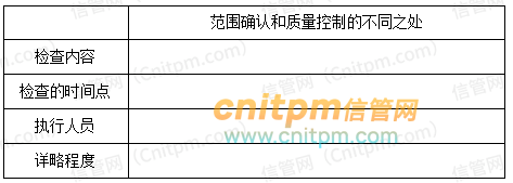 [xx](2)请阐述范围确认和质量控制的不同点,完成以下表格。[/xx]