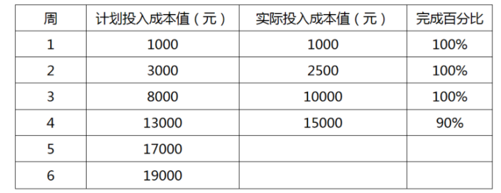 某信息系统集成项目计划6周完成,项目经理就前4周的项目进展情况进行分析情况如下,项目的成本执行指数CPI为()。 A.0.83B.0.87C.0.88D.0.95