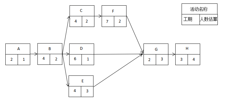 某项目的网络资源计划如图所示,已知每位工程师的日均成本为400元/天。