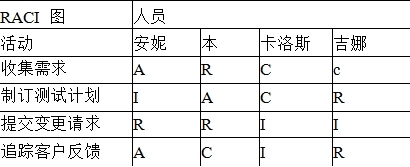 在规划阶段,某个新来的团队成员正在编制责任分配矩阵,结果如下图所示。作为项目经理你应该提出怎么样的指导意见?()