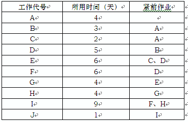 某工程有10项工作,其相互的依赖关系如下表所示,则双代号网络计划绘制正确的是(1),其关键路径时间为(2)天。