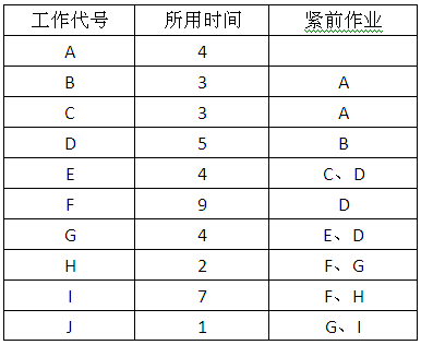 某工程有10项工作,其相互的依赖关系如下表所示,按照该工作关系,第(1)天后开始F工作。