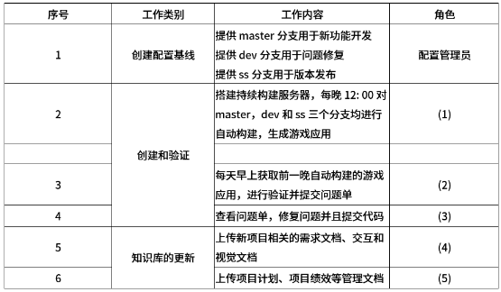 结合案例,请将项目中的相应工作角色(项目经理、产品经理、售前经理、CCB、配置管理员、研发人员、测试人员),对应表格中的[xx](1)[/xx]、[xx](2)[/xx]、[xx](3)[/xx]、[xx](4)[/xx]、[xx](5)[/xx]进行填写