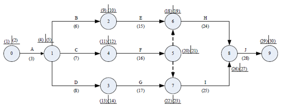【问题2】根据对单元测试进度检查的结果,请确定:①工作B、C、D 的进度是正常还是延误(给出延误的天数);是否影响工期并说明为什么。②在项目总工期允许拖延的情况下,请重新计算网络时间参数并填入下图的空(1)~(30)中。总工期是正常还是延误?若延误,请给出延误的天数。(6 分)