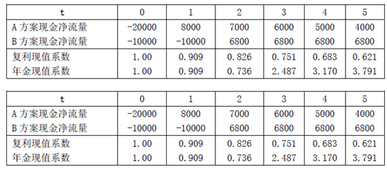 事件1:建设单位根据外聘专家组的意见,从众多的ERP 厂商提供的解决方案中选择出两个方案备选。预计现金流量(NCF)(单位:千元)以及现值系数如下表所示(贴现率为10%)。建设单位要求监理对方案的选择提出监理意见。