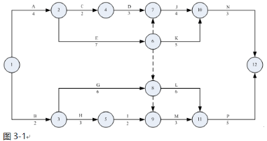 该工程合同工期为22个月,承建单位制定的初始项目实施网络计划如图3-1所示(时间单位:月)。