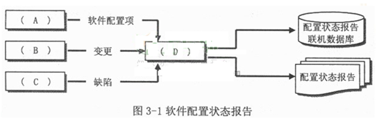 【问题3】 (6分)《ISO / IEC 12207-1995信息技术一软件生存期过程》指出配置管理过程是在整个软件生存期中实施管理和技术规程的过程.针对事件3 ,请选择恰当的内容填入图3-1中的A、 B、C和D空中.
