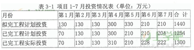 事件 2 :通过公开招标建设单位与承建单位签订了实施合同,计划工期20个月.项目开工后,第7个月末监理进行进度和投资控制时取得投资情况数据如表3-1所示.