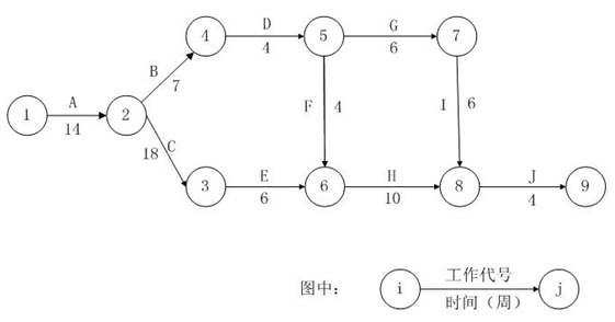 项目原实施计划如下图所示,该工程总工期为1年,在工程按计划进行14周后(已完成A工作施工),甲向乙提出增加一项新的工作内容K,该项工作要求在C工作结束以后开始,并在D工作开始前完成,以保证D工作在B和K工作完成后开始实施,根据由乙提出并经监理工程师研究认可的K工作计划,该项工作的实施时间需要9周。