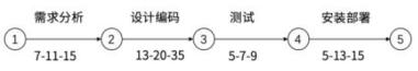 某政府OA系统的建设可分解为需求分析、设计编码、测试、安装部署4个活动,各个活动顺次进行,没有时间上的重叠,如下图,则该项目的标准差是()。 A. 7.3B. 5.1C. 4.3D. 2.2