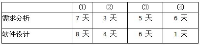T和H分别作为系统需求分析师和软件设计工程师,参与①、②、③、④四个软 件的开发工作。T的工作必须发生在H开始工作之前。每个软件开发工作需要的工时如 下表所示。