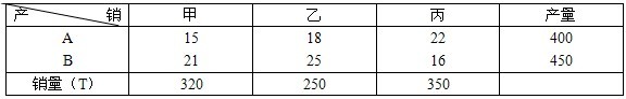 A、B两个煤矿负责供应甲、乙、丙三个城市煤炭。已知A、B两矿年产量、三个城市的需求量以及从两煤矿至各城市煤炭运价如下表。由于供不应求,经协商,甲城市必要时可少供应0-30万吨,乙城市需求须全部满足,丙城市需求不少于270万吨。如果要将甲、乙两矿煤炭全部分配出去,满足上述条件又使总运费最低的成本是()。A、14650B、14600C、14550D、14500