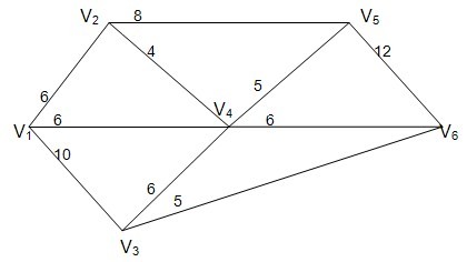 某地区的公路网如图所示,图中V1,……,V6为地点,边为公路,边上所赋的权数为该段公路的流量(单位为千辆/小时),请求出V1 到V6 的最大流量为()。