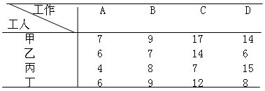 有4个工人,要指派他们分别完成4项工作,每人做各项工作所消耗的时间如下表: