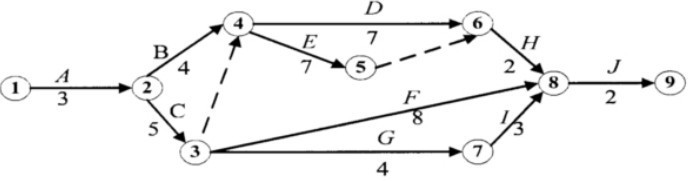 以下是某工程进度网络图,如果因为天气原因,活动③→⑦的工期延后2天,那么总工期将延后( )天。A.0B.1 C.2 D.3