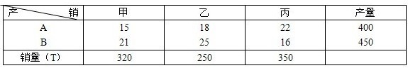 A、B两个煤矿负责供应甲、乙、丙三个城市煤炭。已知A、B两矿年产量、三个城市的需求量以及从两煤矿至各城市煤炭运价如下表。由于供不应求,经协商,甲城市必要时可少供应0-30万吨,乙城市需求须全部满足,丙城市需求不少于270万吨。如果要将甲、乙两矿煤炭全部分配出去,满足上述条件又使总运费最低的成本是()。A、14650B、14600C、14550D、14500