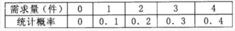 某公司打算经销一种商品,进价为450 元/件,售价500 元/件。若进货商品一周内售不完,则每件损失50 元。假定根据已往统计资料估计,每周最多销售4件,并且每周需求量分别为0、1、2、3 和4 件的需求量与统计概率之间的关系如下表所示: