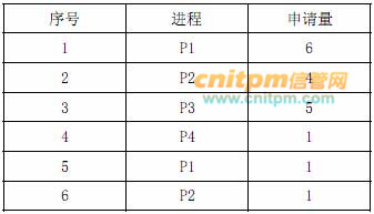 操作系统分配资源时的一个重要考虑是避免死锁的发生.若系统中有同类资源 16 个,由四个进程 P1、P2、P3 和 P4 共享该资源。已知 P1、P2、P3、P4 所需的资源总数分别为 8、5、9、6。各进程请求资源的次序如下表,若系统采用银行家算法为它们分配资源,那么( )依次申请分配会使系统进入不安全状态。