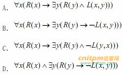 设谓词 R(x)x 是实数,L(x,y)x>y,则“对于每一个实数,均存在小于等于它的实数”可符号化为( )。 A. AB. BC. CD. D
