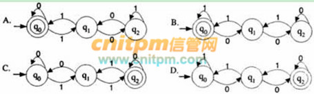 若将有限状态自动机(DFA)识别的0、1符号串看作二进制数,则(1)识别的是能被十进制数3整除的正整数,(2)是与该自动机等价的正规式。 (1)A. AB. BC. CD. D(2)A、0*(101'01)*0* B、(0*10101)* C、(0*(11)*(00)*)* D、(0*(1(01'0)*1)*)*