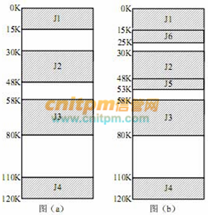 图(a)所示是某一个时刻J1、J2、J3、J4四个作业在内存中的分配情况,若此时操作系统先为J5分配5KB空间,接着又为J6分配10KB空间,那么操作系统采用分区管理中的( )算法,使得分配内存后的情况如图(b)所示。A、最先适应 B、最佳适应C、最后适应 D、最差适应