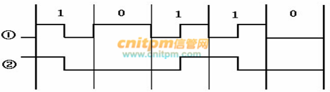 若磁盘的写电流波形如下图所示:图中①波形的记录方式是(1);②波形的记录方式是(2)。(1)A、调频制(FM) B、改进调频制(MFM) C、调相制(PE) D、不归零制(NRZ)(2)A、调频制(FM) B、改进调频制(MFM) C、调相制(PE) D、不归零制(NRZ)