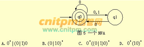 某一非确定性有限自动机(NFA)的状态转换图如下图所示,与该NFA等价的正规式是(1),与该NFA等价的DFA是(2)。(1)(2) (1)A. AB. BC. CD. D(2)A. AB. BC. CD. D