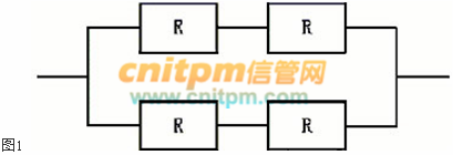 某计算机系统的可靠性结构是如下图所示的双重串并联结构,若所构成系统的每个部件的可靠度为0.9 ,即R=0.9 ,则系统的可靠度为( ) 。