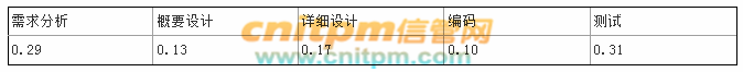 某软件工程项目各开发阶段工作量的比例如下表所示假设当前已处于编码阶段,3000 行程序已完成了1200 行,则该工程项目开发进度已完成的比例是( ) 。A、29% B、45% C、59% D、63%