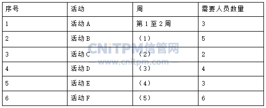 假设每名开发人员能力相同,项目所有活动均可承担,在确保总工期不受影响的情况下,请完成如下人员安排计划表。