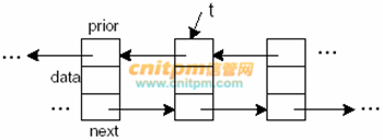B、t->prior->prior = t->prior; t->next->next = t->next;