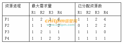 某系统中有四种互斥资源R1、R2、R3和R4,可用资源数分别为3、5、6和8。假设在T0时刻有P1、P2、P3和P4 四个进程,并且这些进程对资源的最大需求量和已分配资源数如下表所示,那么在T0时刻系统中R1、R2、R3和R4的剩余资源数分别为 (1) 。如果从T0时刻开始进程按 (2) 顺序逐个调度执行,那么系统状态是安全的。