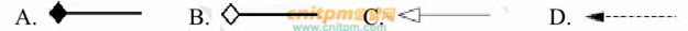 在 UML 类图中,类与类之间存在依赖(Dependency)、关联(Association)、聚合(Aggregation)、组合(Composition)和继承(Inheritance)五种关系,其中,(1)关系表明类之间的相互联系最弱,(2)关系表明类之间的相互联系最强,聚合(Aggregation)的标准 UML 图形表示是(3) 。
