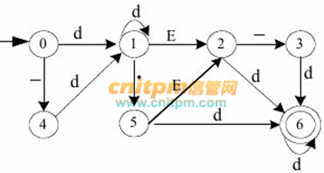 某确定性有限自动机(DFA)的状态转换图如下图所示,令 d= 0|1|2|...|9,则以下字符串中, 能被该 DFA 接受的是 ( ) 。 A、3857 B、1.2E+5 C、-123.67 D、0.576E10
