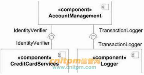 下图属于 UML 中的(1),其中,AccountManagement 需要(2)。(1)A、组件图 B、部署图 C、类图 D、对象图(2)A、实现 IdentityVerifier 接口并被 CreditCardServices 调用 B、调用 CreditCardServices 实现的 IdentityVerifier 接口 C、实现 IdentityVerifier 接口并被 Logger 调用 D、调用 Logger 实现的 IdentityVerifier 接口
