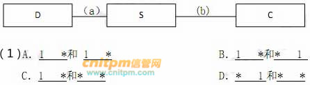 假设有学生 S(学号,姓名,性别,入学时间,联系方式),院系 D(院系号,院系名称,电话号码,负责人)和课程 C(课程号,课程名)三个实体,若一名学生属于一个院系,一个院系有多名学生;一名学生可以选择多门课程,一门课程可被多名学生选择,刚图中(a)和(b)分别国(1)联系,假设一对多联系不转换为一个独立的关系模式,那么生成的关系模式(2)