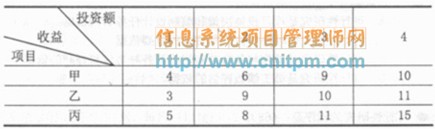 某公司现有400 万元用于投资甲、乙、丙三个项目,投资额以百万元为单位,已知甲、乙、丙三项投资的可能方案及相应获得的收益如下表所示: